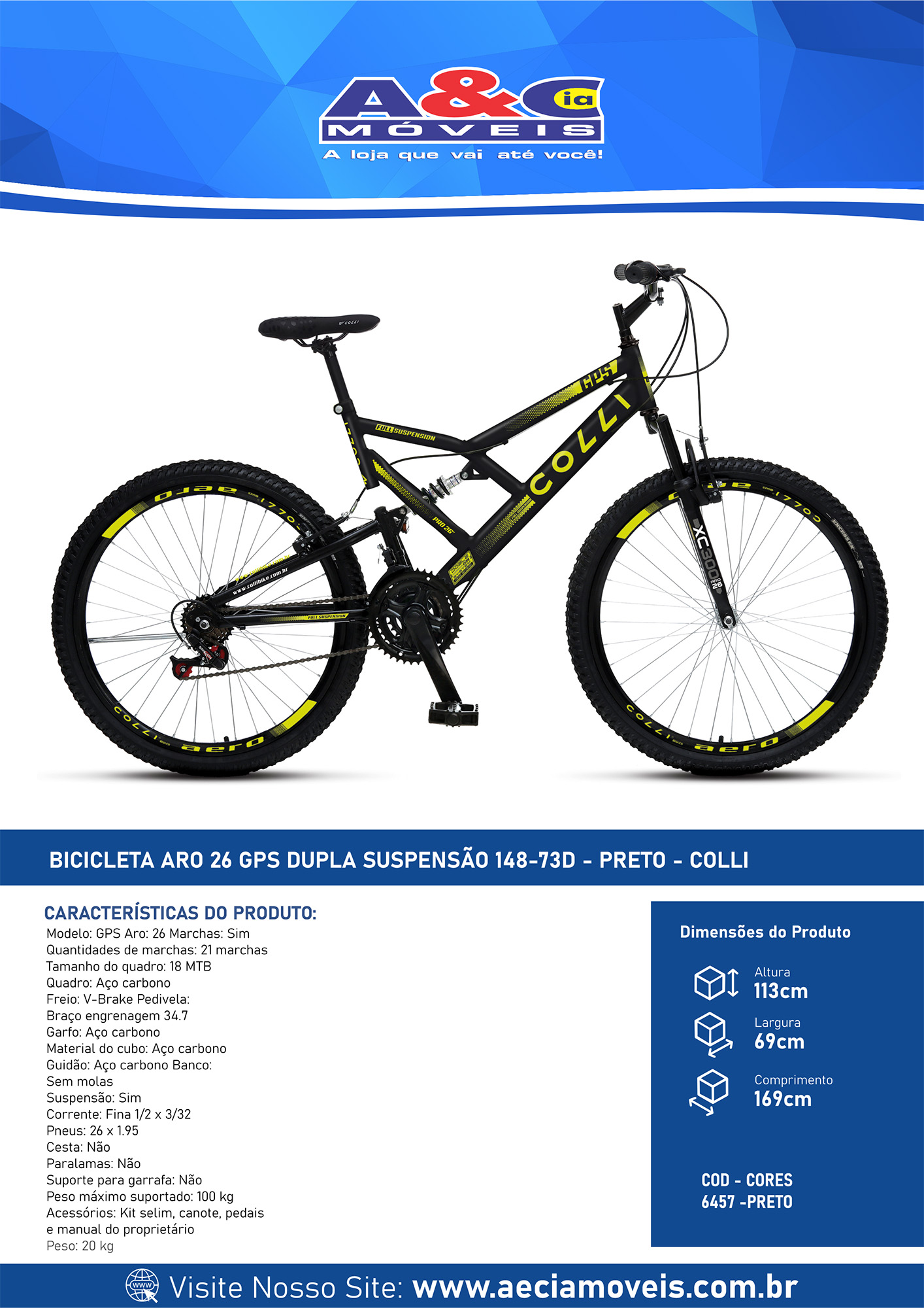 Seja o primeiro a avaliar “BICICLETA ARO 26 GPS DUPLA SUSPENSÃO 148-73D”