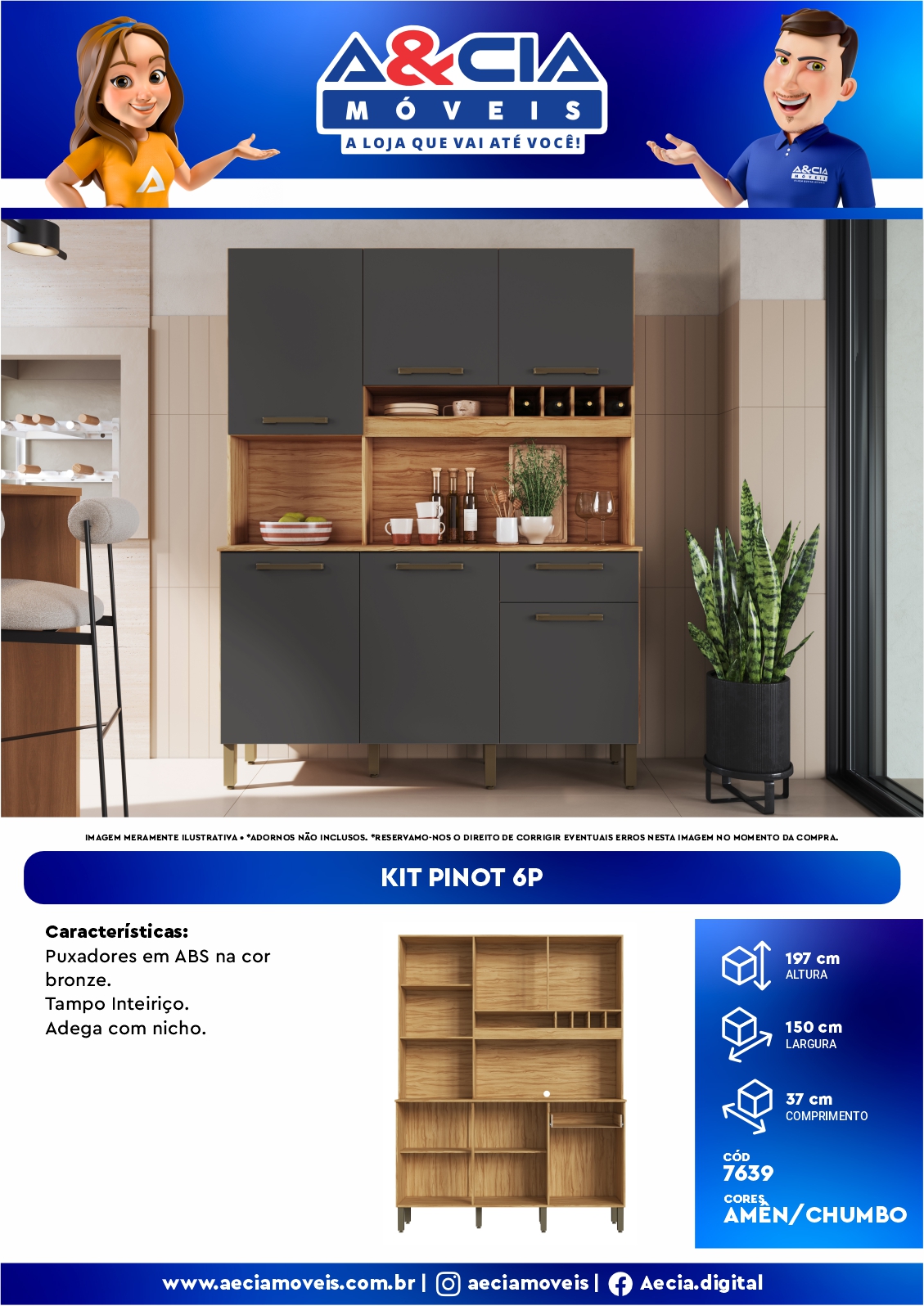 Imagem meramente ilustrativa. Adornos não inclusos. Reservamo-nos o direito de corrigir eventuais erros nesta imagem no momento da compra.