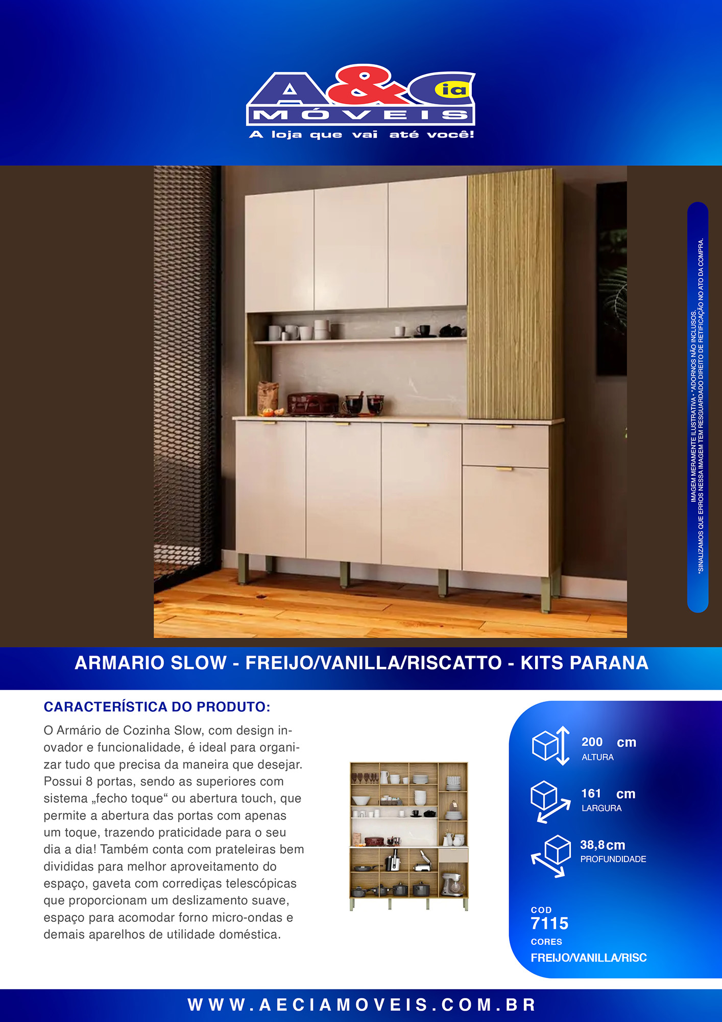 O Armário de Cozinha Slow, com design inovador e funcionalidade, é ideal para organizar tudo que precisa da maneira que desejar. Possui 8 portas, sendo as superiores com sistema fecho toque ou abertura touch, que permite a abertura das portas com apenas um toque, trazendo praticidade para o seu dia a dia! Também conta com prateleiras bem divididas para melhor aproveitamento do espaço, gaveta com corrediças telescópicas que proporcionam um deslizamento suave, espaço para acomodar forno micro-ondas e demais aparelhos de utilidade doméstica