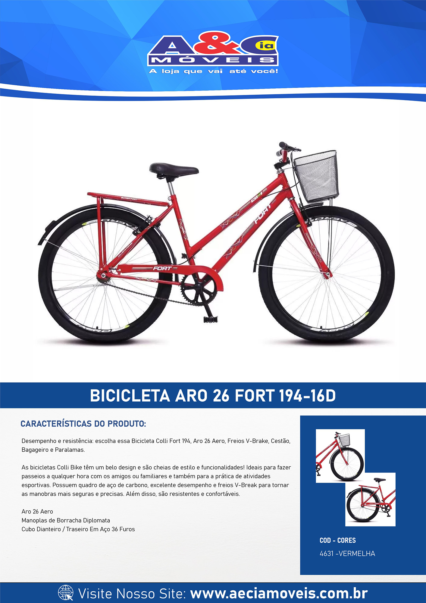 Desempenho e resistência: escolha essa Bicicleta Colli Fort 194, Aro 26 Aero, Freios V-Brake, Cestão,