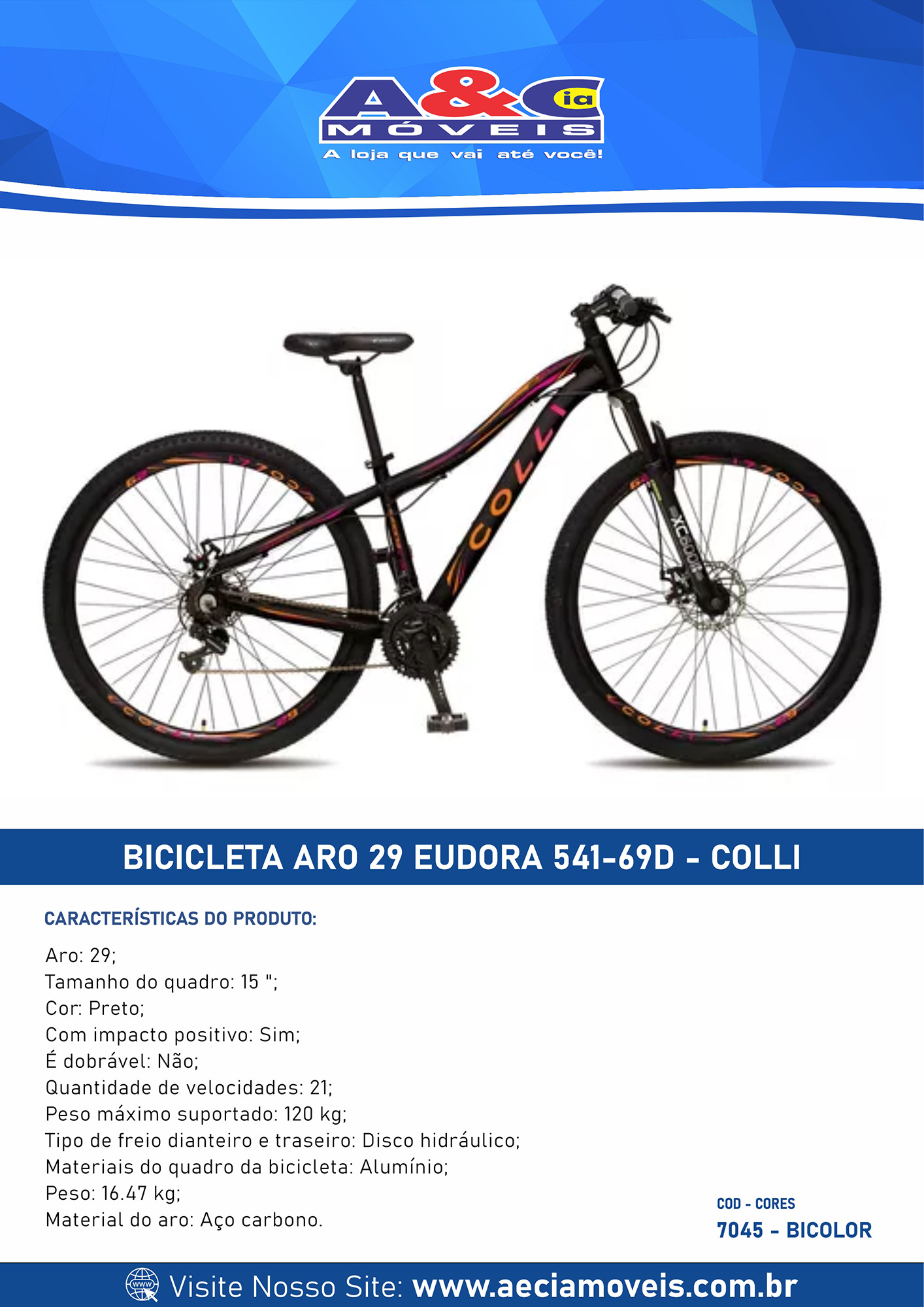 Para sua informação: a bicicleta é enviada desmontada e não oferecemos montagem.