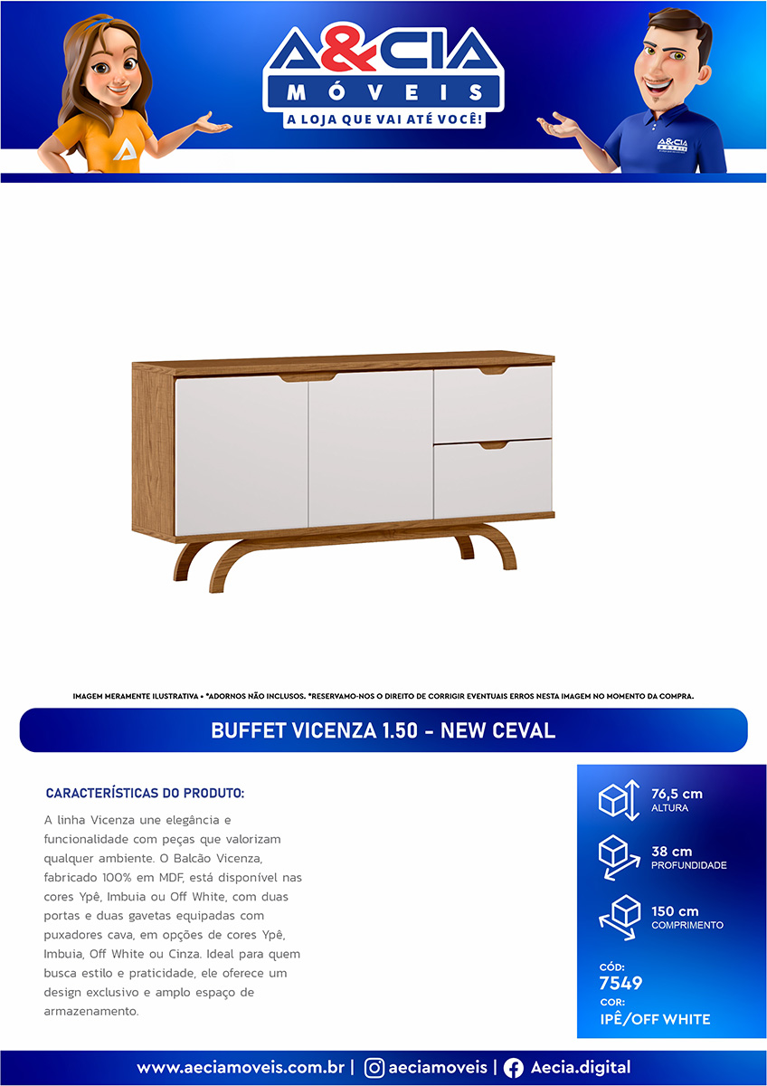 A linha Vicenza une elegância e funcionalidade com peças que valorizam qualquer ambiente. O Balcão Vicenza, fabricado 100% em MDF, está disponível nas cores Ypê, Imbuia ou Off White, com duas portas e duas gavetas equipadas com puxadores cava, em opções de cores Ypê, Imbuia, Off White ou Cinza. Ideal para quem busca estilo e praticidade, ele oferece um design exclusivo e amplo espaço de armazenamento.