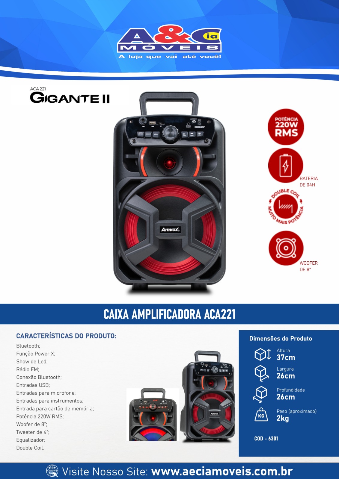 CAIXA AMPLIFICADORA ACA221 GIGANTE II 220W – AMVOX