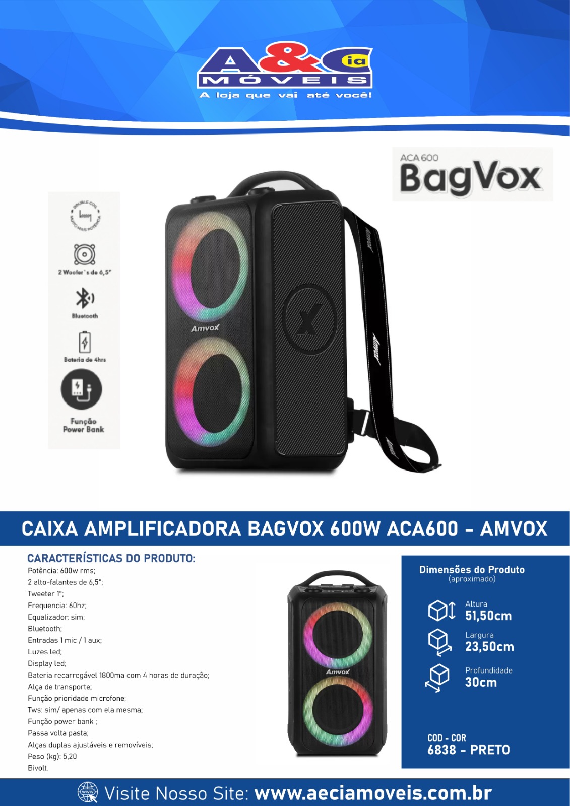 CAIXA AMPLIFICADORA ACA600 BAGVOX 600W – AMVOX