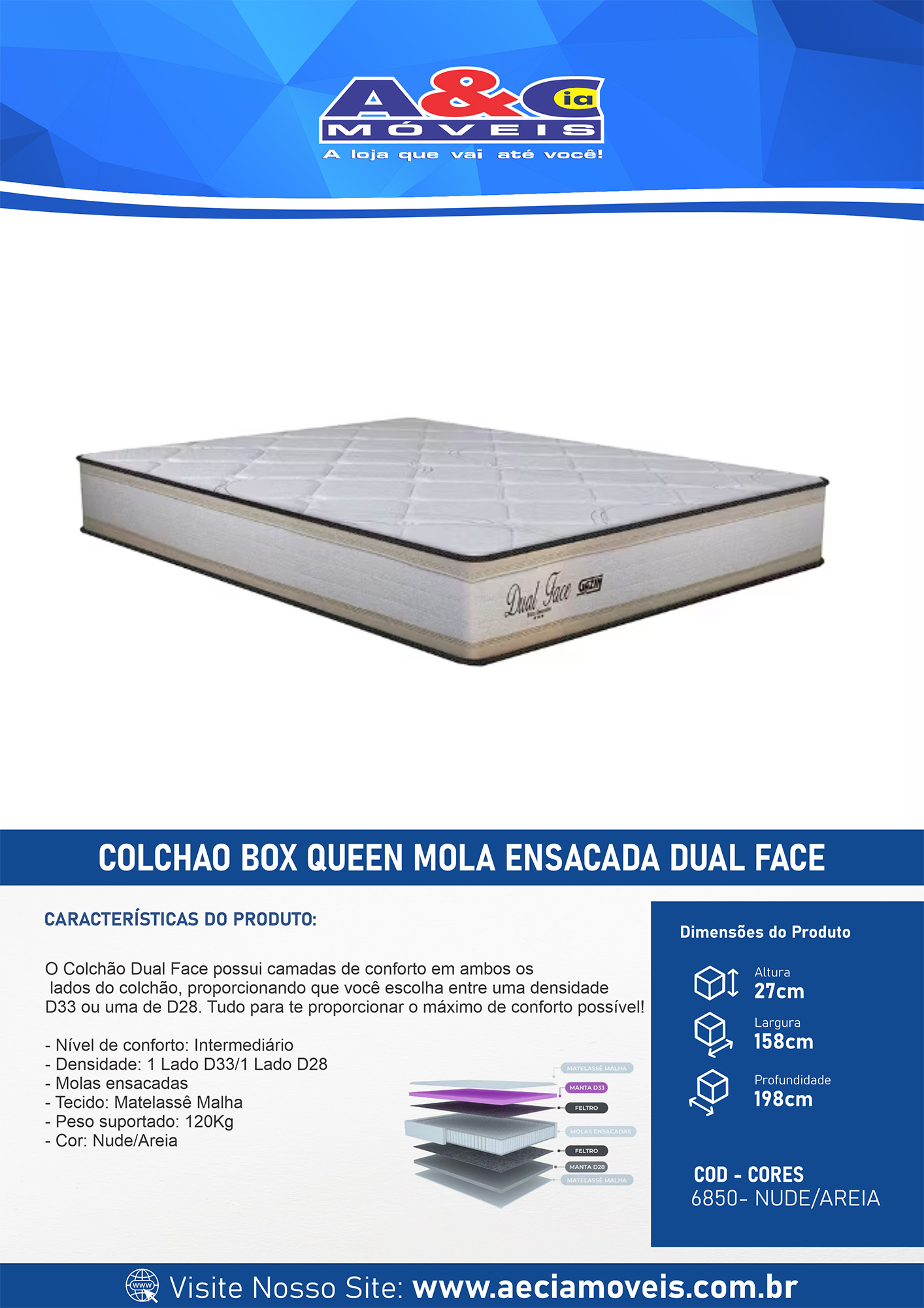 O Colchão Dual Face possui camadas de conforto em ambos os lados do colchão, proporcionando que você escolha uma densidade D33 ou uma de D28. Tudo para te proporcionar o máximo de conforto possível!