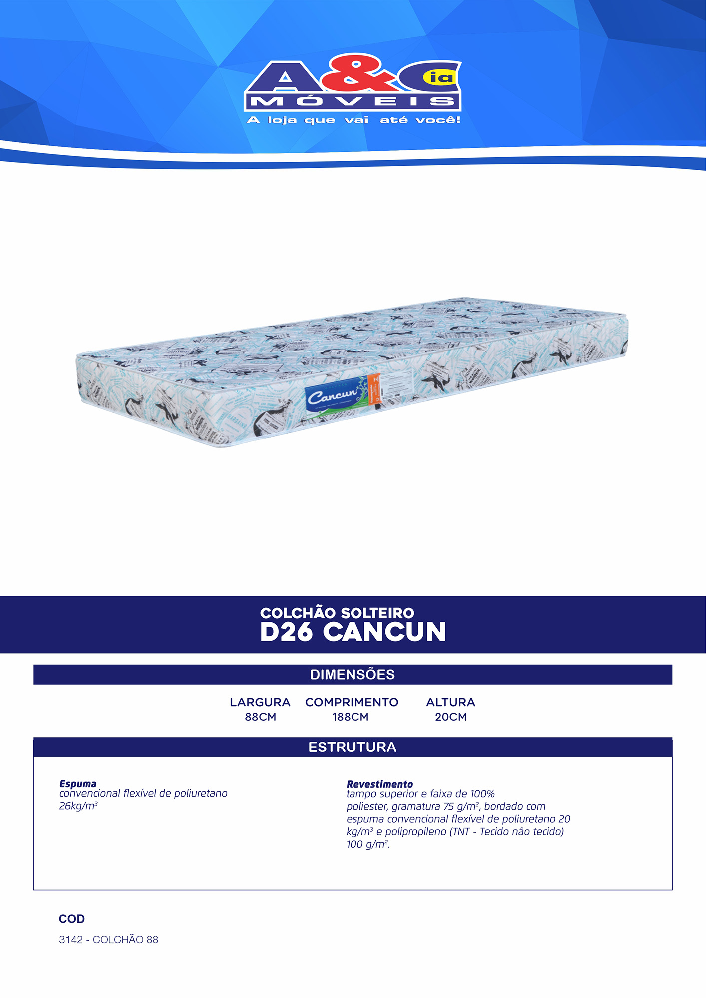 tampo superior e faixa de 100% poliéster, gramatura 75 g/m², bordado com espuma convencional flexível de poliuretano 20 kg/m³ e polipropileno (TNT – Tecido não tecido) 100 g/m².