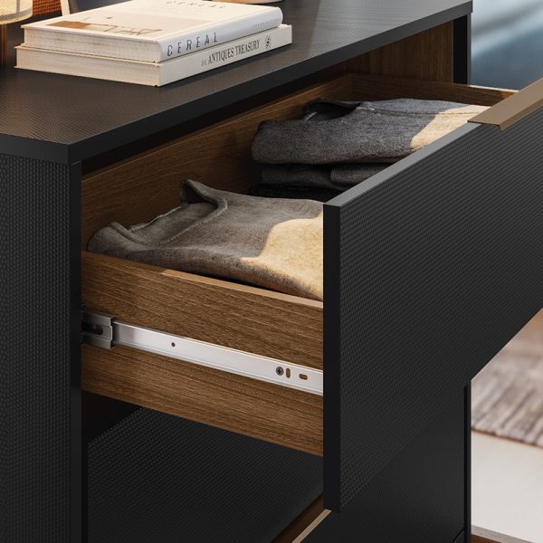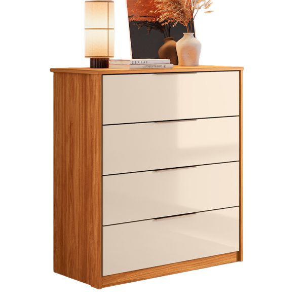 A Cômoda Alia tem estrutura produzida em MDP e revestimento em pintura UV. Puxadores metálicos para maior durabilidade. Gavetas com corrediças telescópicas, para completa abertura e movimento suave. Design versátil que se adapta em ambientes de diferentes estilos.