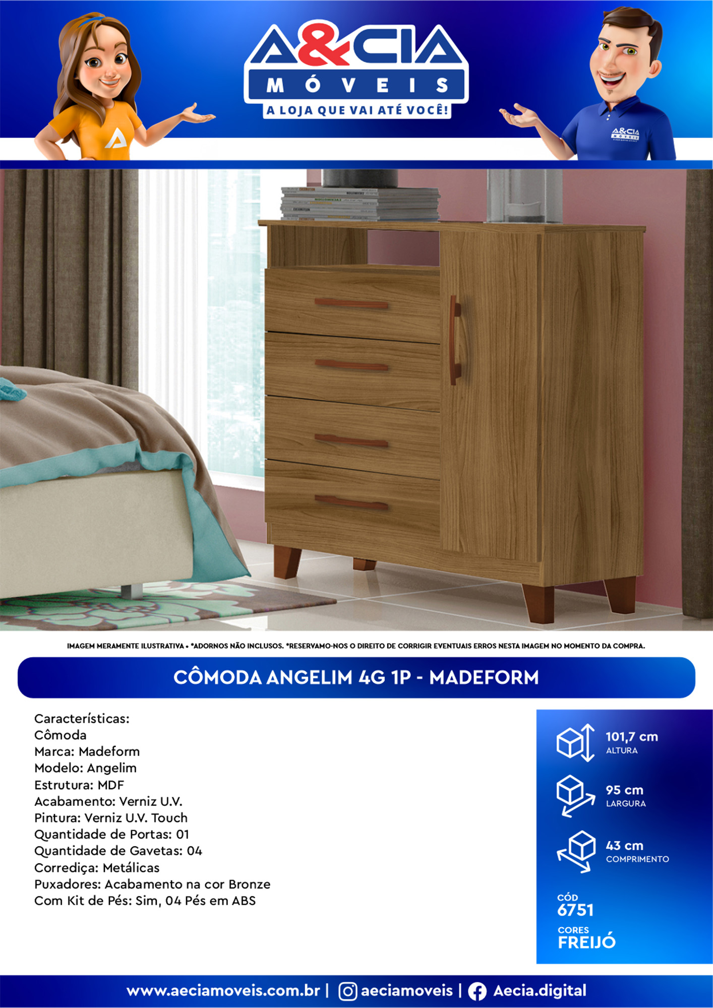 Cômoda Madeform Angelim, você terá um móvel funcional e esteticamente agradável, tornando seu quarto mais organizado e charmoso.