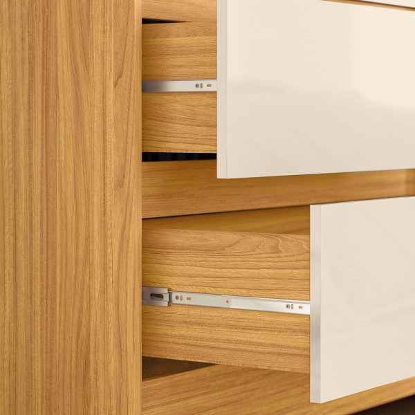 A Cômoda Sintra tem estrutura produzida em MDP e revestimento em pintura UV. Ampla bancada para lindas decorações ou objetos que desejar ter fácil acesso. Gavetas com corrediças telescópicas, para completa abertura e movimento suave. Puxadores estilo cava para um design minimalista e funcionais.