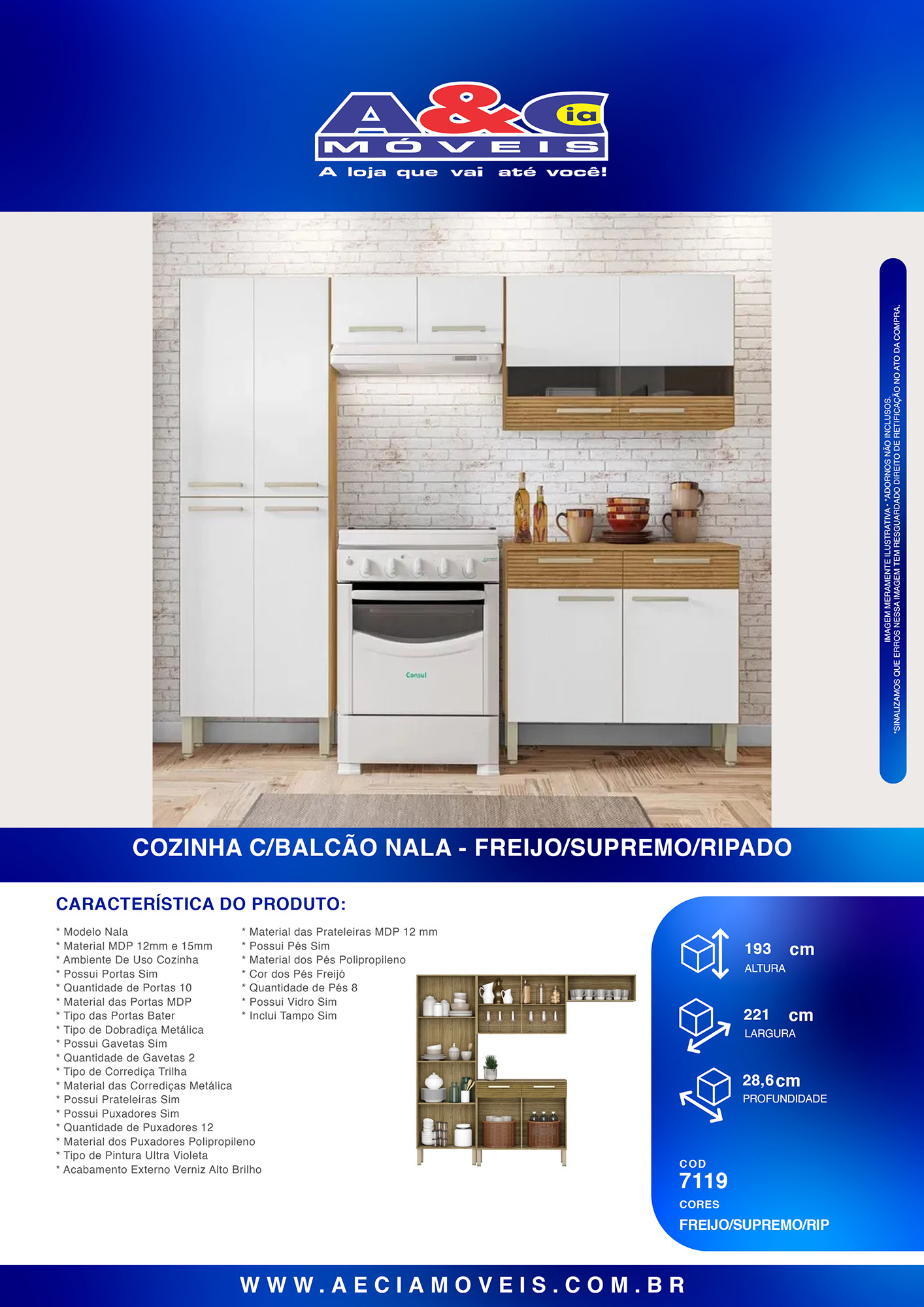 Cozinha c/ Balcão Nala Freijó / Supremo / Ripado