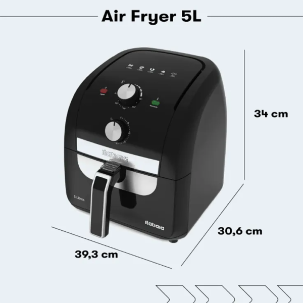 • Conteúdo da embalagem: 01 Fritadeira Air Fryer Itatiaia 5L, 01 Manual de instruções.