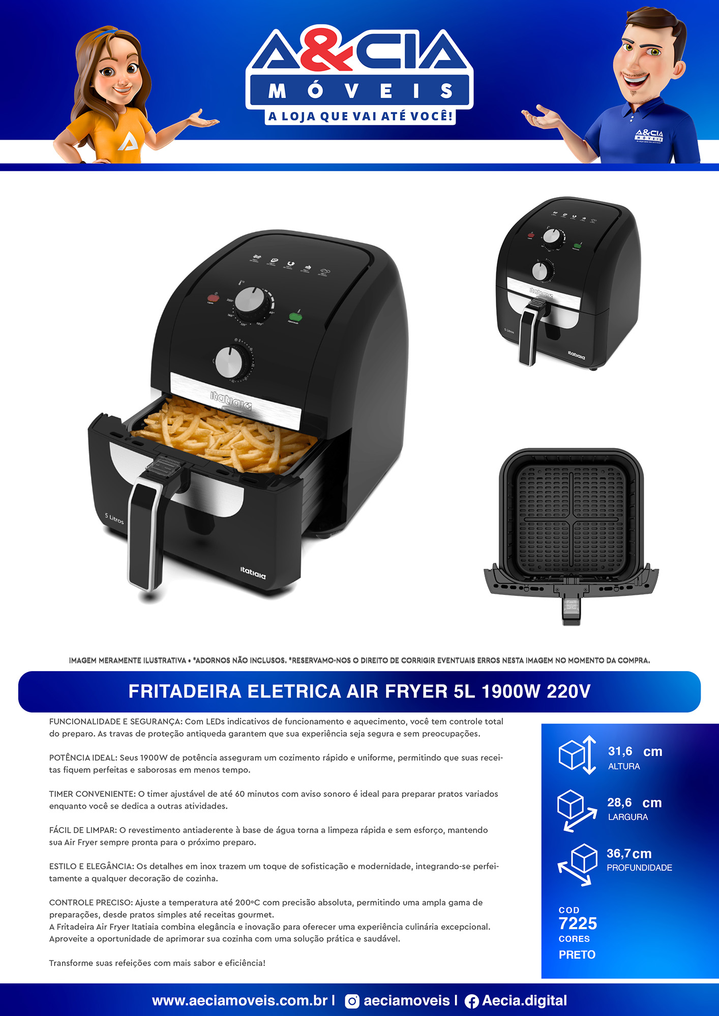 A Fritadeira Air Fryer Itatiaia combina elegância e inovação para oferecer uma experiência culinária excepcional. Aproveite a oportunidade de aprimorar sua cozinha com uma solução prática e saudável.