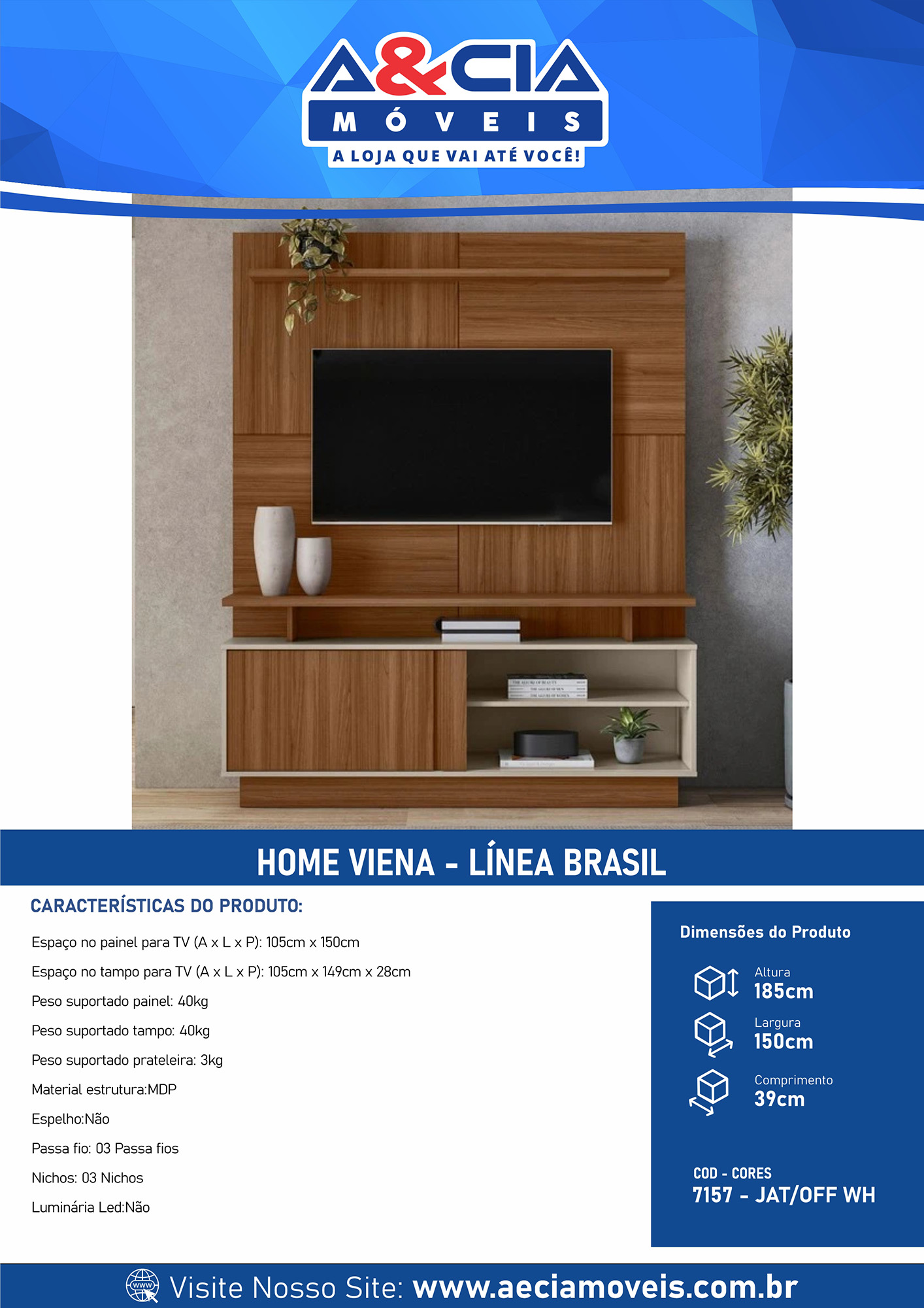 Espaço no painel para TV (AxLxP): 105cm x 150cm x 0cm