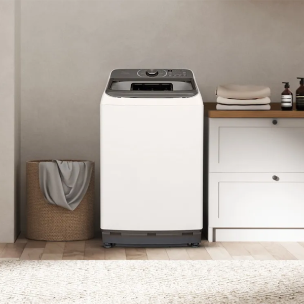 Com acesso superior, a lavadora possui centrifugação de 500 RPM, eliminando o excesso de água das roupas com eficiência. Ela conta com dispenser para sabão e amaciante, sistema que elimina fiapos e classificação energética A, além do selo Procel, garantindo economia e sustentabilidade.