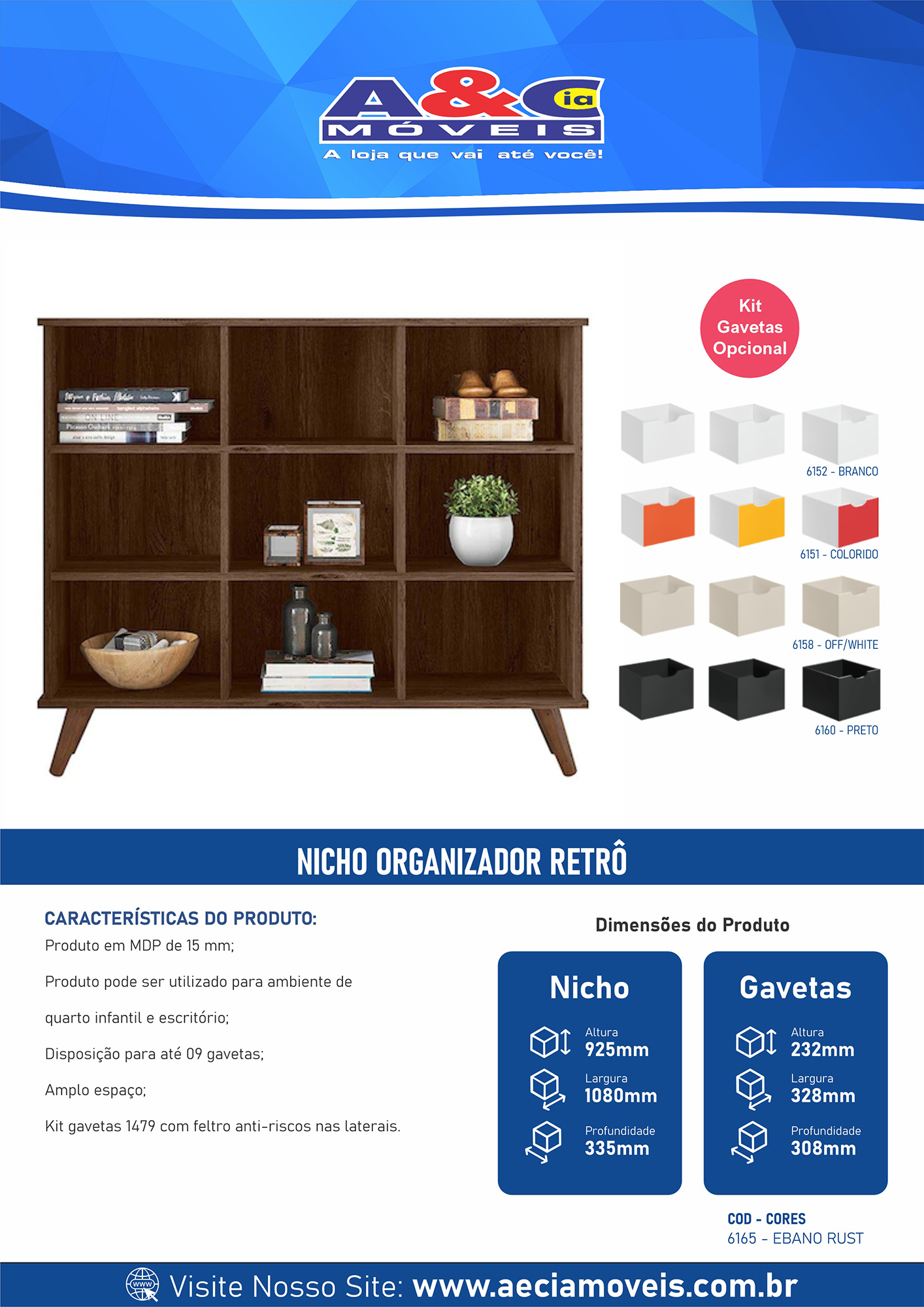 Disposição para até 9 gavetas