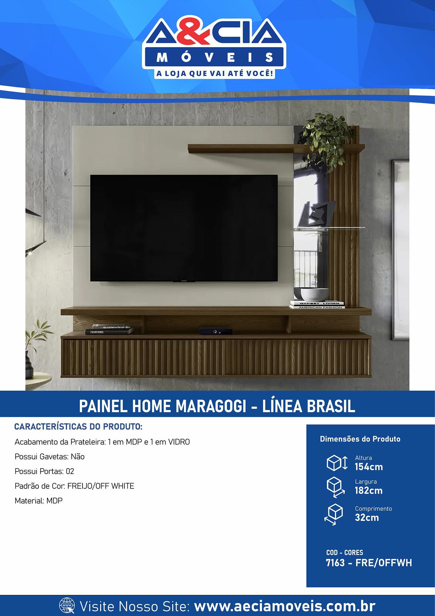 Acabamento da Prateleira: 1 em MDP e 1 em Vidro