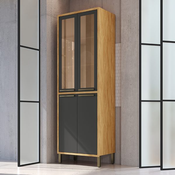 Puxadores em alumínio na cor bronze.