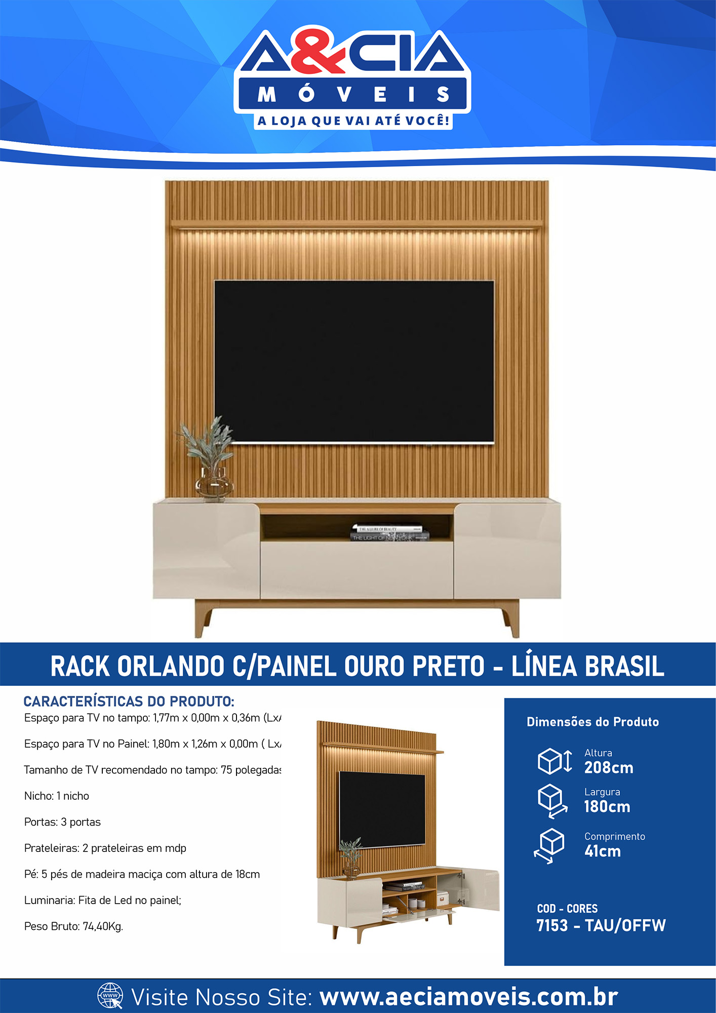 Espaço para TV no Painel: 1,8m x 1,26m x 0m (LxAxC)