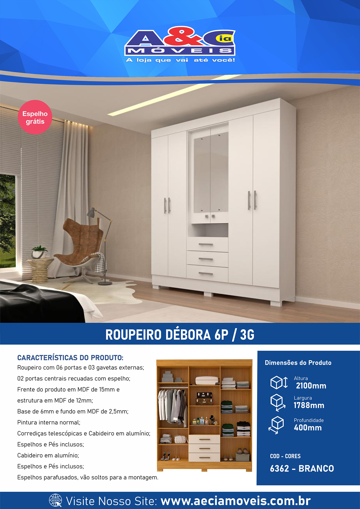 • Amplo espaço interno / Large internal space / Amplio espacio interno