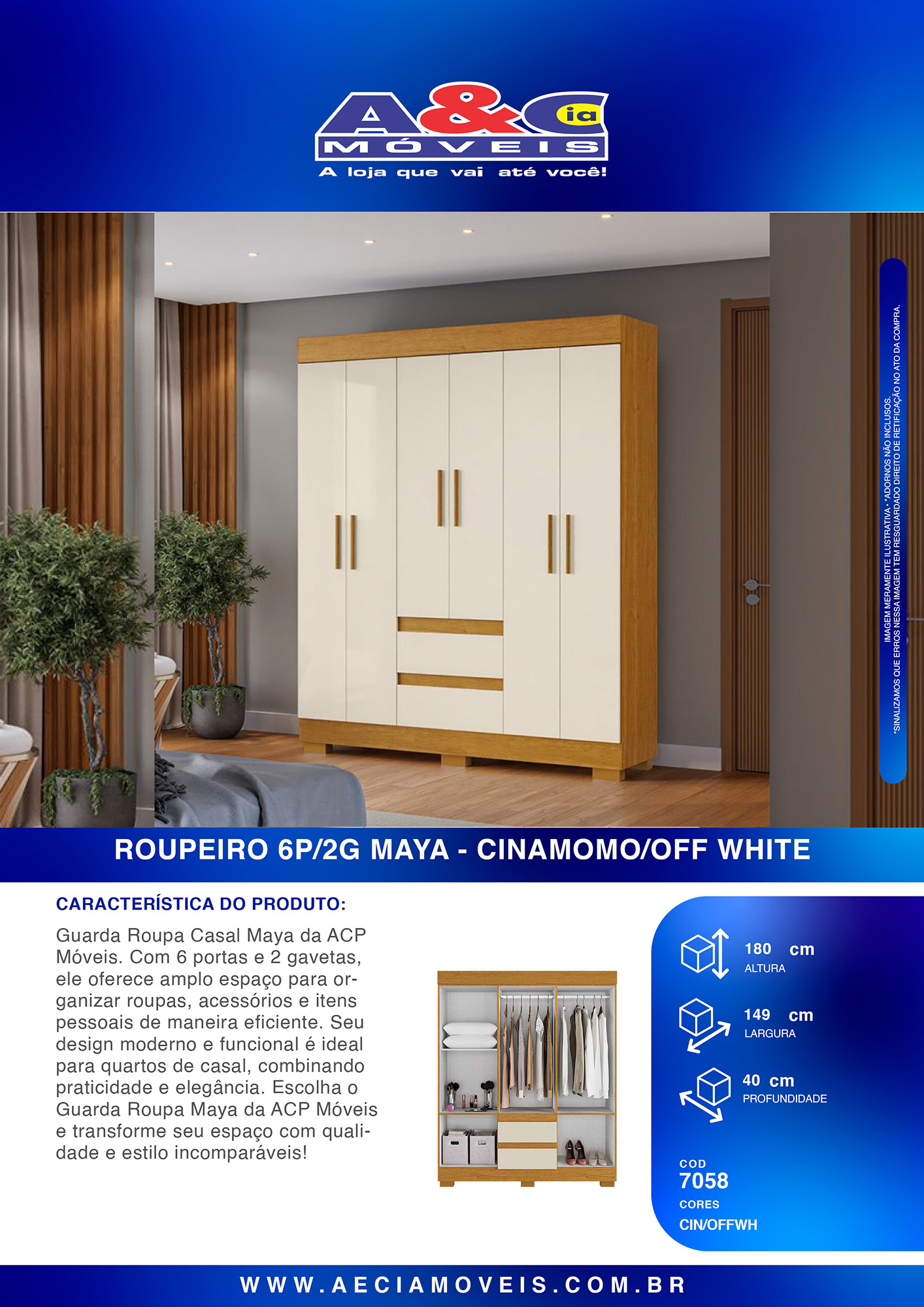 Guarda Roupa Casal Maya da ACP Móveis. Com 6 portas e 2 gavetas, ele oferece amplo espaço para organizar roupas, acessórios e itens pessoais de maneira eficiente. Seu design moderno e funcional é ideal para quartos de casal, combinando praticidade e elegância. Escolha o Guarda Roupa Maya da ACP Móveis e transforme seu espaço com qualidade e estilo incomparáveis!
