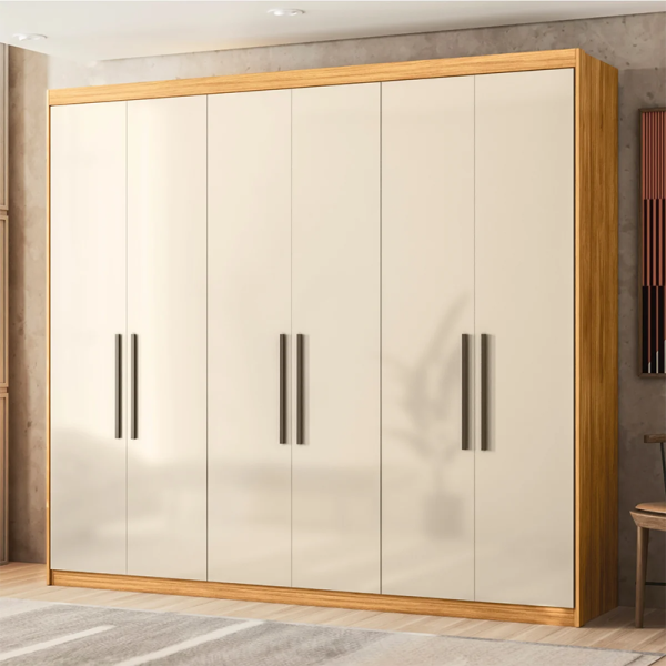 O Guarda-Roupa Casal Venice é um produto em MDF e revestimento em pintura UV. Cabideiros e calceiro metálicos. Gavetas internas com corrediças telescópicas. Portas de giro com dobradiças metálicas e puxadores em MDF.