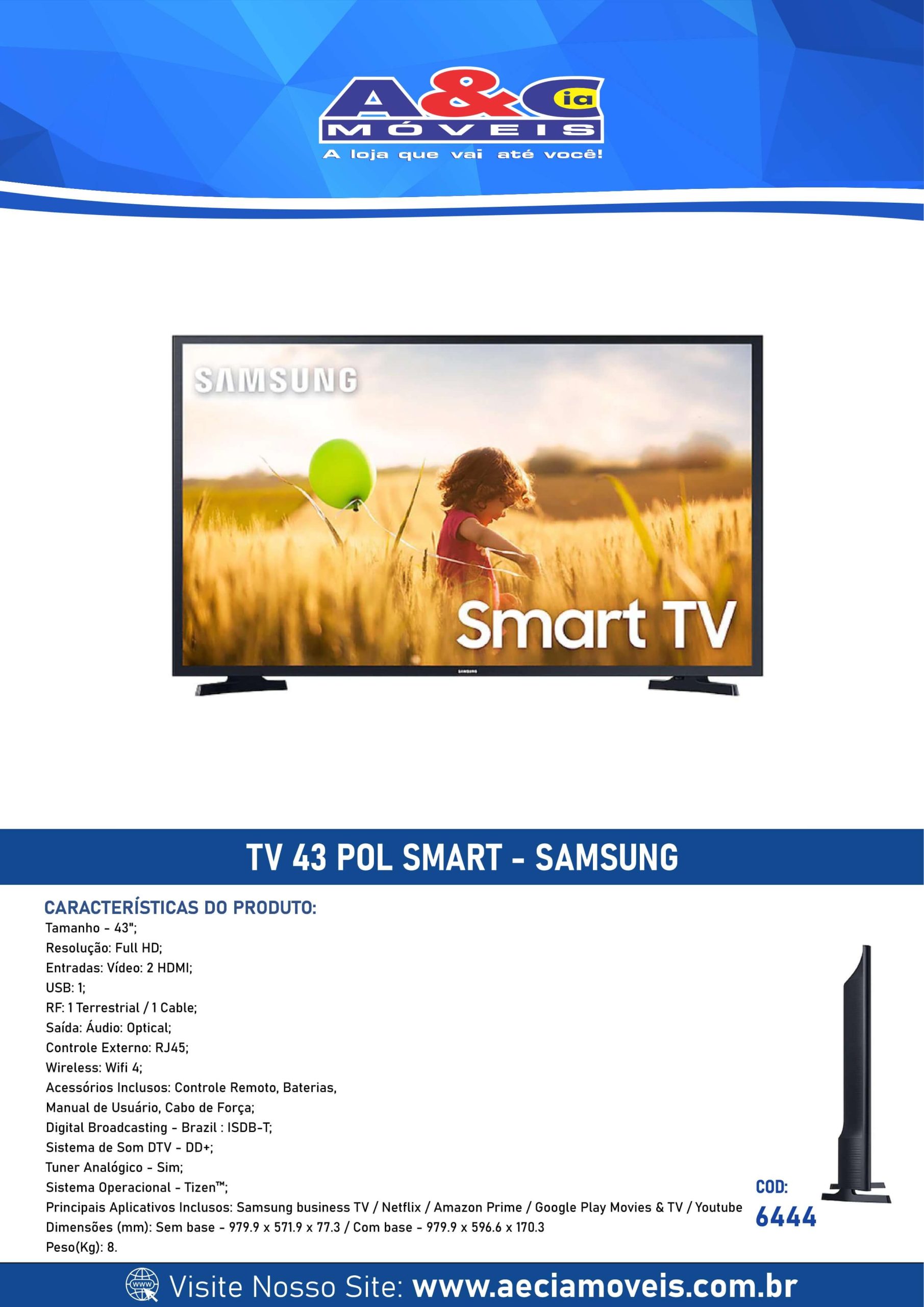Tv com base: 979,9 x 571,9 x 77,3mm (LxAxP)