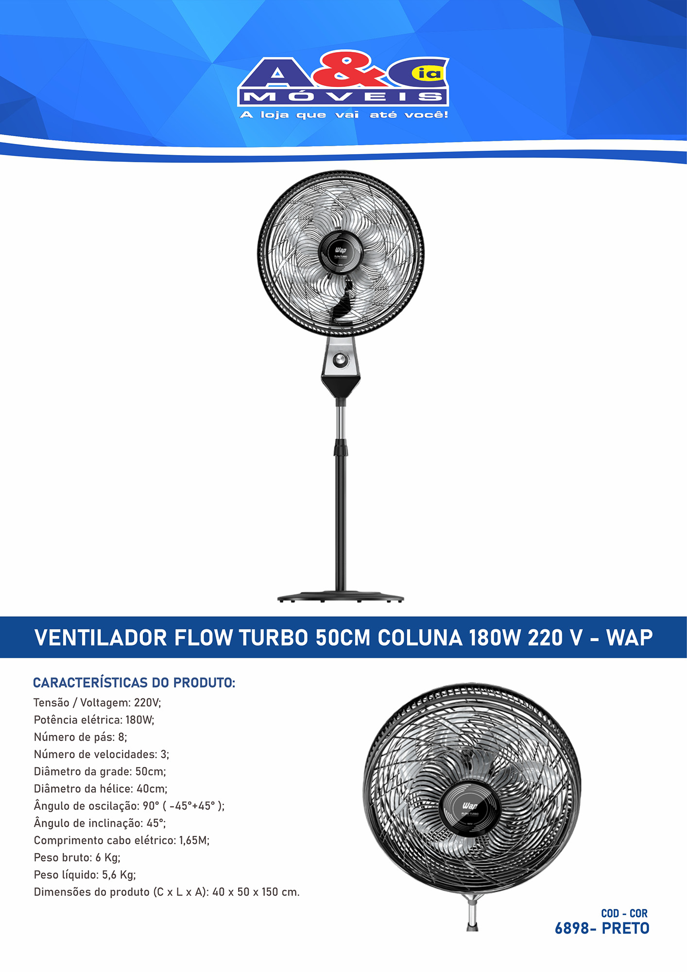 Seja o primeiro a avaliar “Ventilador Flow Turbo 50cm Coluna 180W 220V”