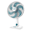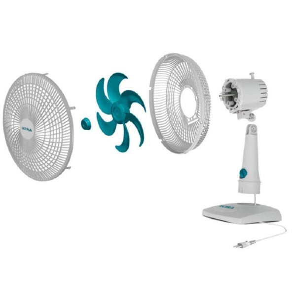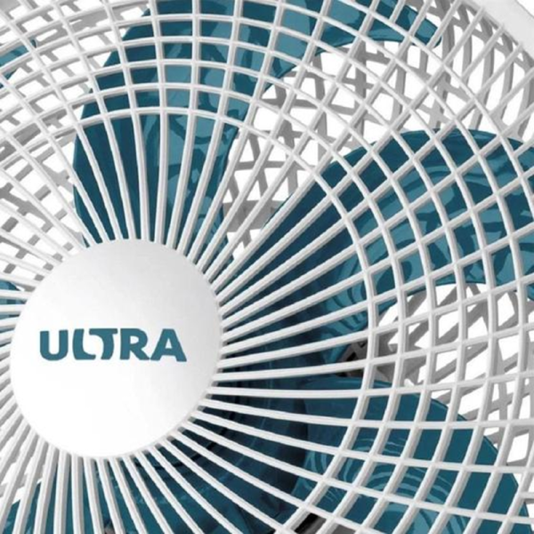 O Ventilador de Mesa Ultra Mondial V-30B-6P, nas cores branco e azul, é um aparelho para ajudar a refrescar o ambiente em dias quentes. Ele tem um diâmetro de 30cm e conta com 6 pás. O ventilador possui 3 velocidades, o que permite ajustar o fluxo de ar de acordo com a necessidade. O produto pode ser usado tanto na mesa quanto na parede. Ele tem funções de oscilação e inclinação. Com 50W de potência, o ventilador busca ter uma boa vazão de ar. Ele tem grades desmontáveis, o que facilita na hora da limpeza. O ventilador é feito de polipropileno. O consumo aproximado de energia é de 0,05 Kw/h. É um aparelho que oferece opções de uso e busca amenizar o calor.
